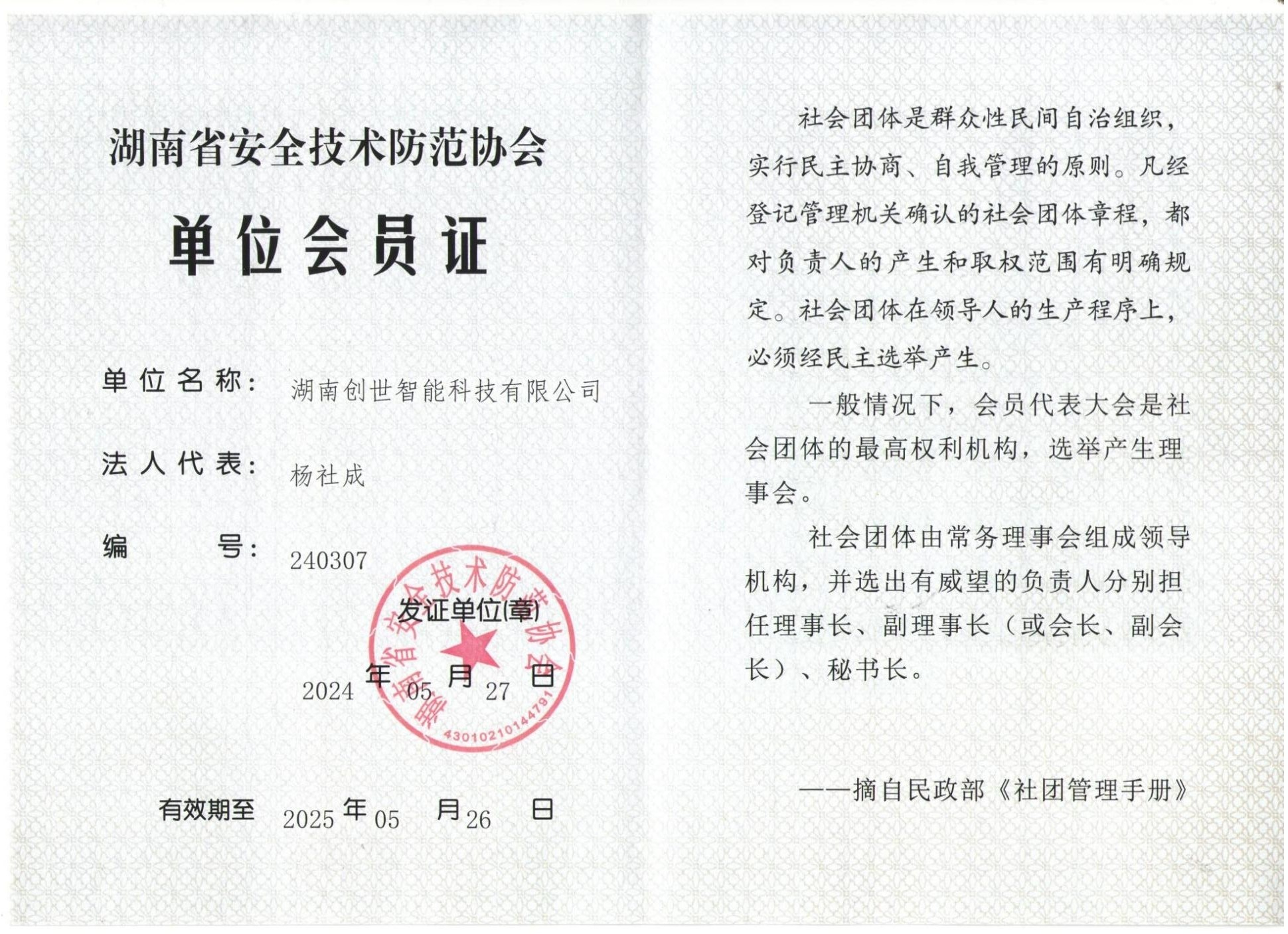 湖南省安全技术防范协会单位会员证